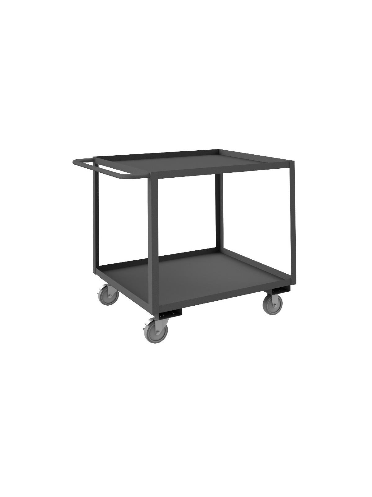 Shelf carts are constructed with 1-1/2" x 1/8" angle iron uprights for added strength. Heavy duty 14 gauge steel shelves. Sturdy tubular push handle. Perfect for transporting heavier parts or stock items. Shelf Stock Carts are available in 1,200 lbs. or 3,000 lbs. capacities. FOB Shipping Point.