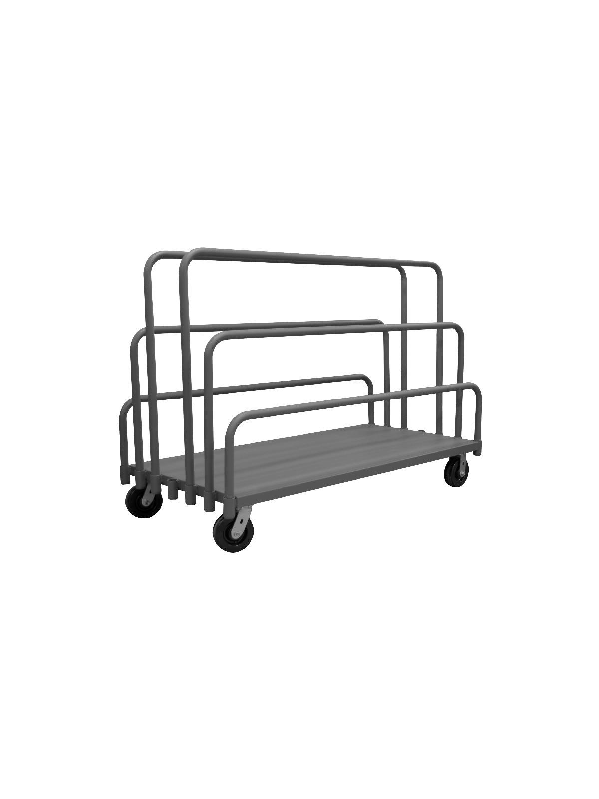 Easy to access and pick up on-board product. Create multiple opening sizes by adjusting dividers. All casters: 2 rigid, 2 swivel. Allows for the storage and transportation of various sizes of panels and product. Gray, textured, powder coat finish. FOB Shipping Point. Steel surcharges may apply.