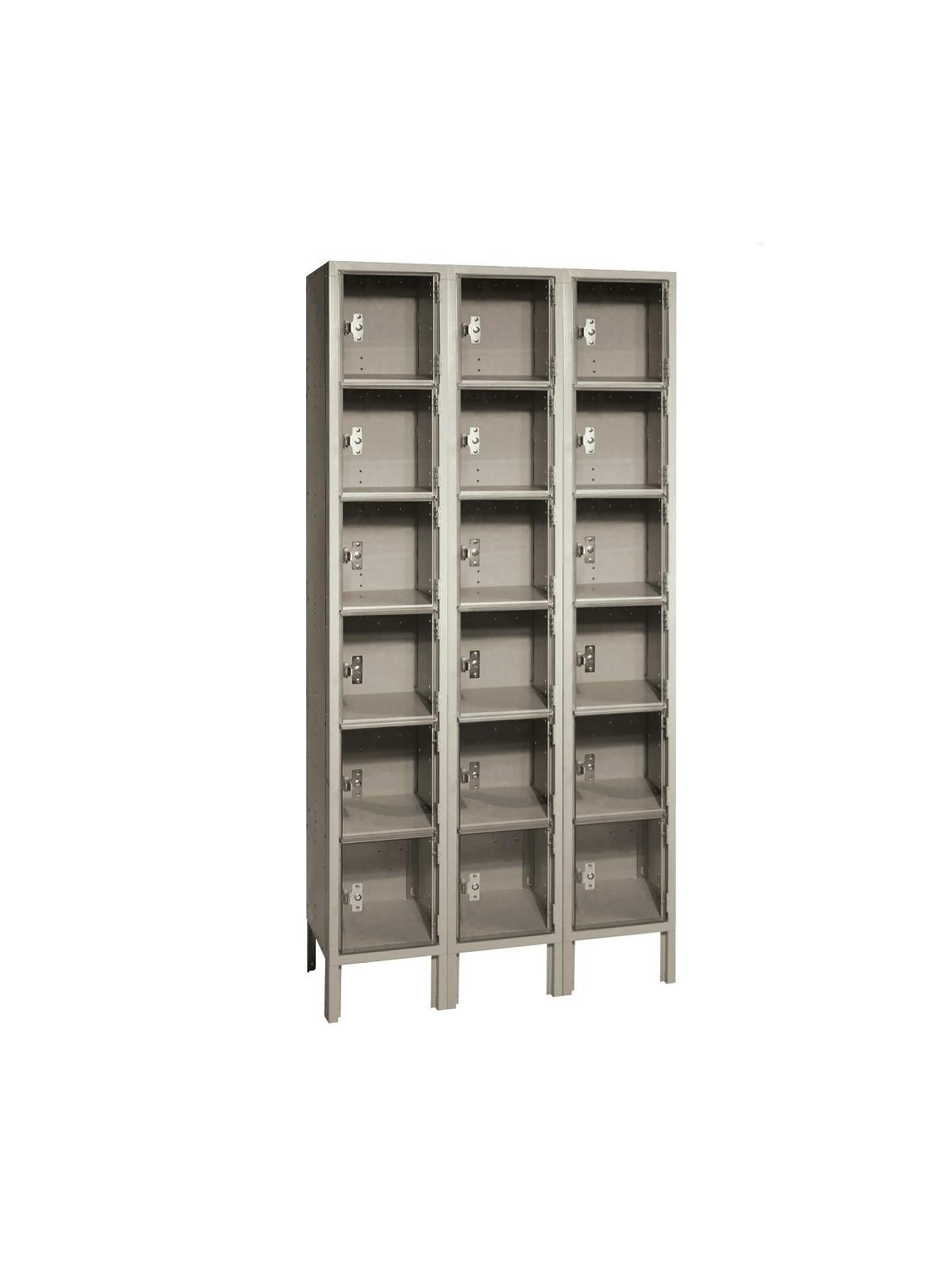 ClearSight™ Lockers are engineered with high strength injection molded polycarbonate doors. Doors are 12"W x 12"H and feature a steel pull handle with built-in padlock attachment. 16-gauge locker frame provides extra strength and durability. Factory assembled lockers feature pop rivet construction. FOB Shipping Point.