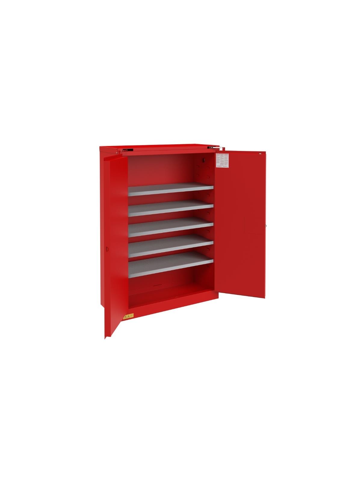 Flammable Storage Cabinets are required by OSHA and UFC in commercial and industrial facilities where flammable liquids are used and stored. Cabinets feature recessed lockable paddle latch and 3 point locking systems which greatly improves security. Bunged air vents on each side of the cabinet allows for greater ventilation. Constructed of all welded Heavy Duty Steel.