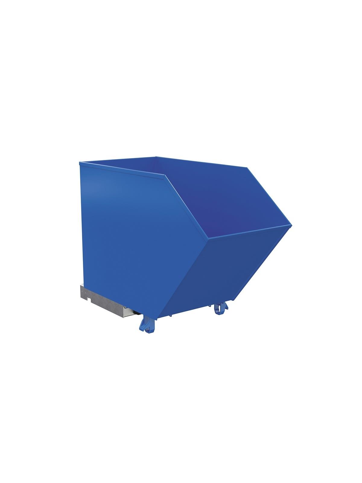 Units feature a full 90 degree dump angle with a cushioned rubber bumper stop. The low profile design is essential for convenient loading. Dumping with a fork truck is quick and simple. A cable is pulled from the seat of the fork truck to dump the hopper. The unit returns to an upright and locked position when lowered to the ground. The included safety restraint/chain must be securely attached to the lift truck without slack. 22" L usable fork pockets measure 7" W x 2"H. Formed base thickness is 1/4". Blue baked-in powder-coated toughness with a galvanized base. Other colors available-contact factory. Models H-25 may be stacked with H-50 models, while the H-100 can be stacked with the H-150 models. The H-200 hoppers can only be stacked with other H-200 series models. Must be attached to fork truck when dumping. FOB Shipping Point.