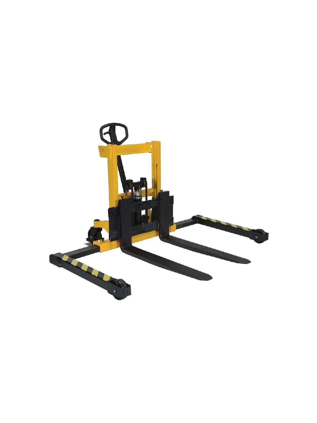 Manual Hydraulic Hand Pump Stackers are sturdy and compact to fit through most standard doors. Forks are raised by manual hydraulic hand pump operation and released by a lever situated on the handle. 3/4" lift per handle pump. NM stands for narrow mast.