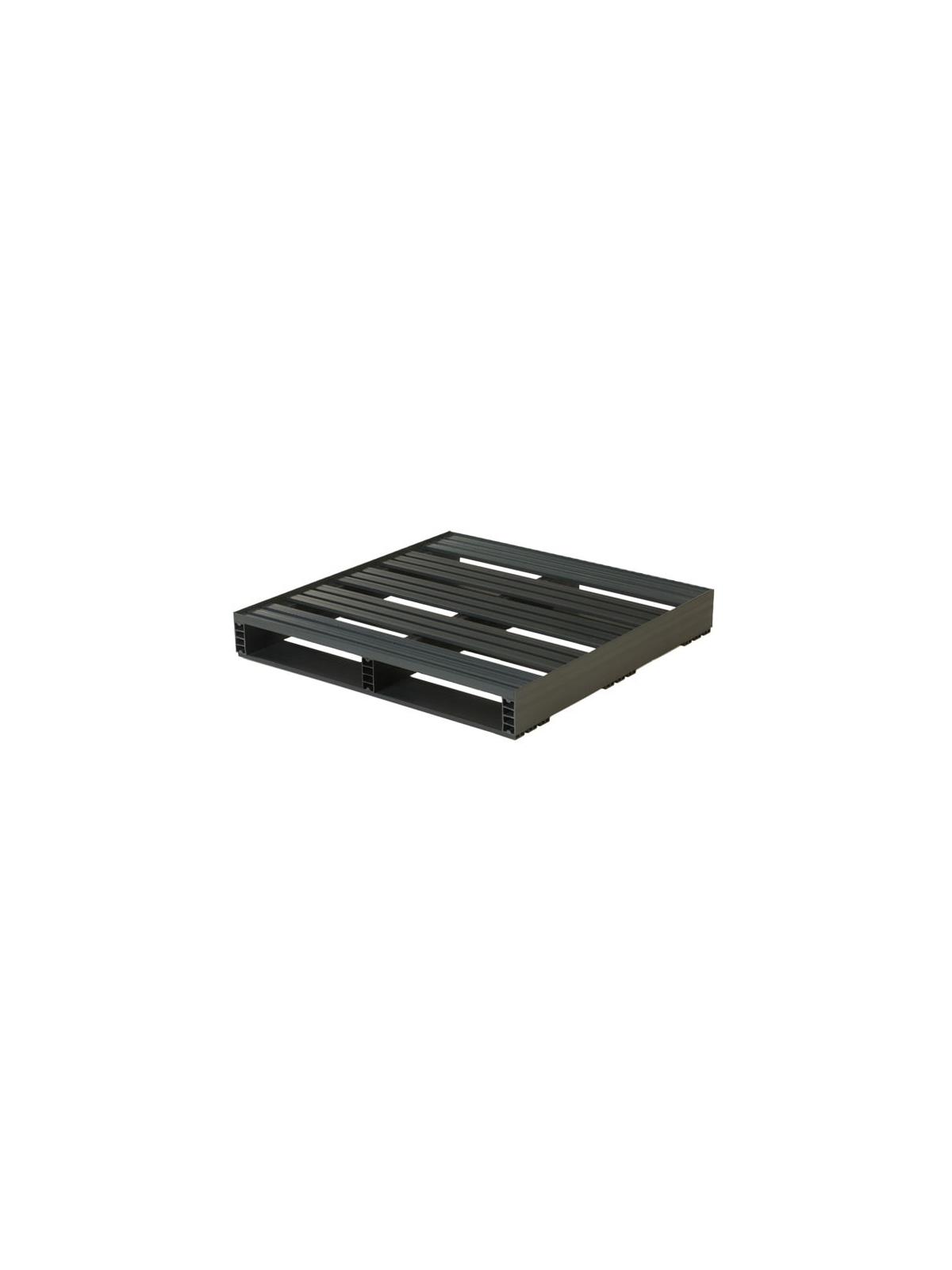 Pallets are made from recycled rigid PVC and will vary in color (shades of gray to black), weight and surface consistency.
