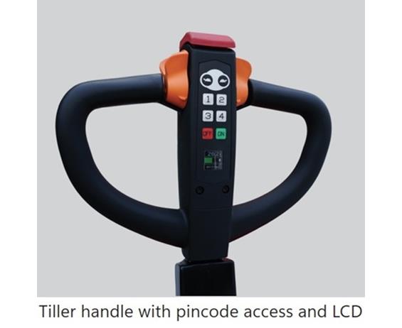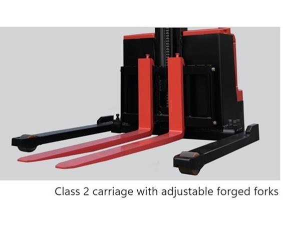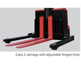 Curtis controller that features 24V AC with CAN Bus electrical system. Forged, 4"W x 42"L, forks painted safety orange (straddle models only). Class 2 carriage with multiple locking positions. Newly designed tiller handle with keypad, turtle speed, horn and battery discharge indicator. Polyurethane, non-marking load wheels. Power-on function. FOB Shipping Point. Load Backrest, Forged Forks, Rubber Drive Wheel, not all options available for all models - call for pricing. Pricing subject to change without notice.