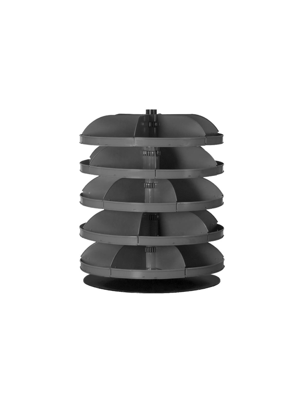 When space is at a premium, Rotabin® is the answer. Revolving shelves turn easily, independently...even when fully loaded. Made of heavy gauge steel for hard daily use. Available in Gray powder coat. FOB Shipping Point.
